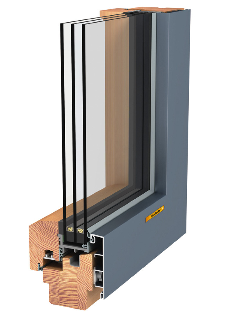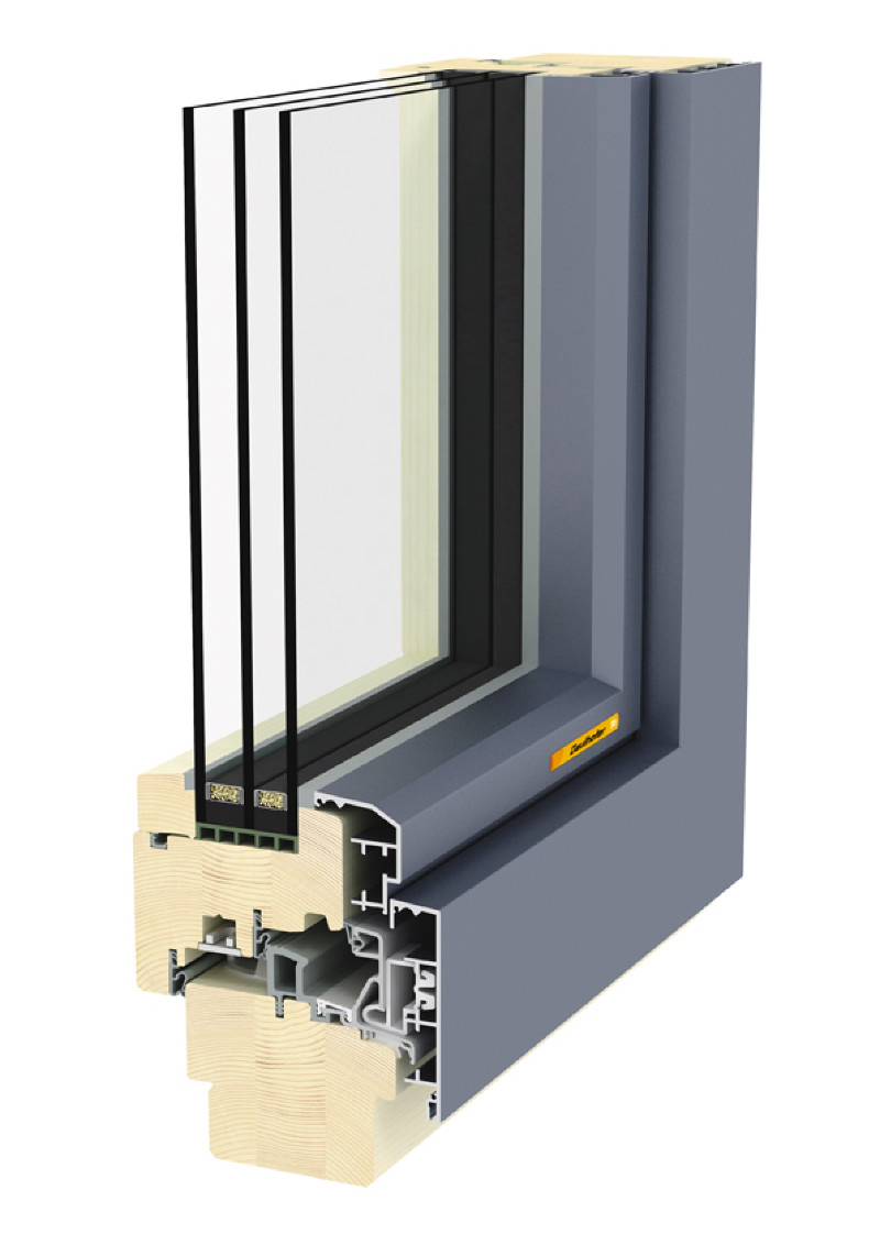 Die Design-Variante PURE mit flächenversetzter Alu-Schale gibt der Außenansicht des Holz-Alu-Fensters ein puristisch-kantiges Gesicht: nobel in seiner Zurückhaltung - und cool.