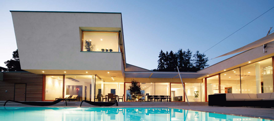 Das rahmenlose Ganzglasystem ist wahlweise als 2-fach-Verglasung (Ug-Wert = 1,1 W/m2K) oder 3-fach-Verglasung (Ug-Wert = 0,6 W/m2K bzw. 0,5 W/m2K) erhältlich.